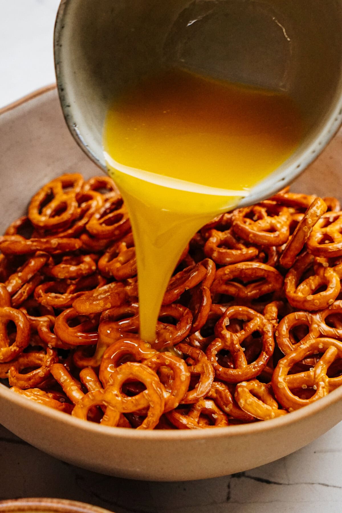 - Unsalted Butter: Melted butter helps the cinnamon sugar stick to the pretzels.