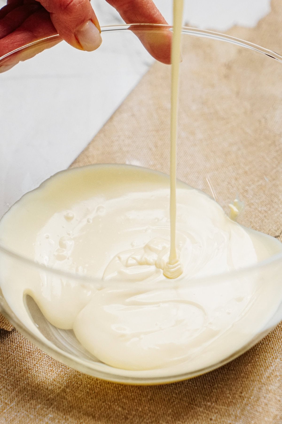 - In a small microwavable bowl, microwave vanilla candy melts in 15-20 second increments until smooth and melted, stirring in between sessions.