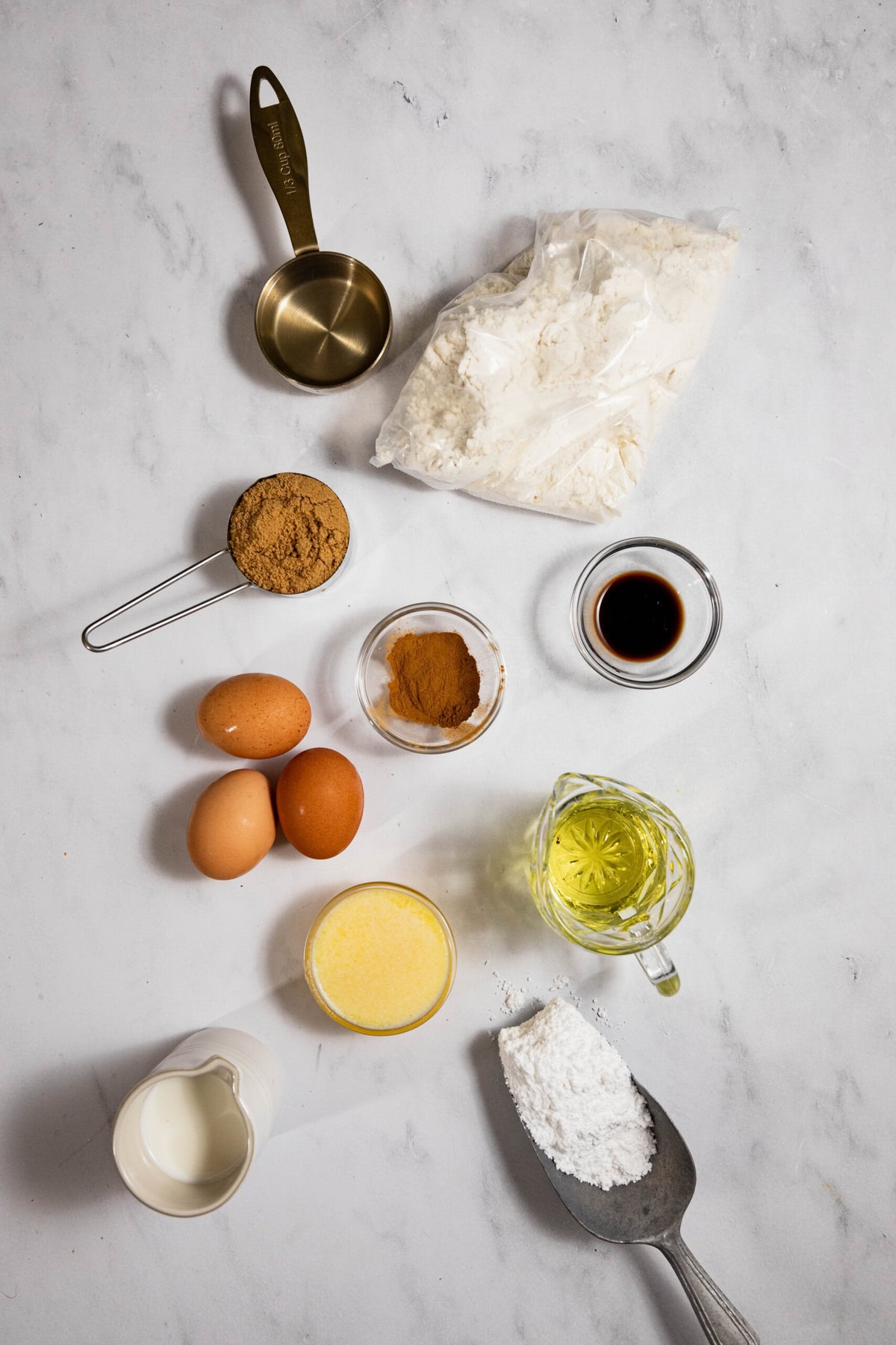 Everything you need for this cake is pretty common baking ingredients. Here’s what you’ll need to get started. Be sure to check out the variations list if you want to make change things up!