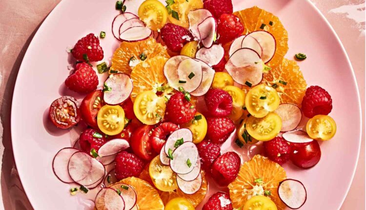 This seemingly simple salad of summer berries, citrus, radishes, and tomatoes gets a kick from a tangy, umami-rich mirin vinaigrette.