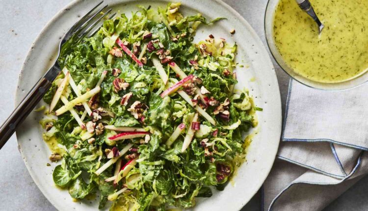 Toss kale, shaved brussels sprouts, and Honeycrisp apple with a vibrant lemon vinaigrette for a bright and satisfying salad.