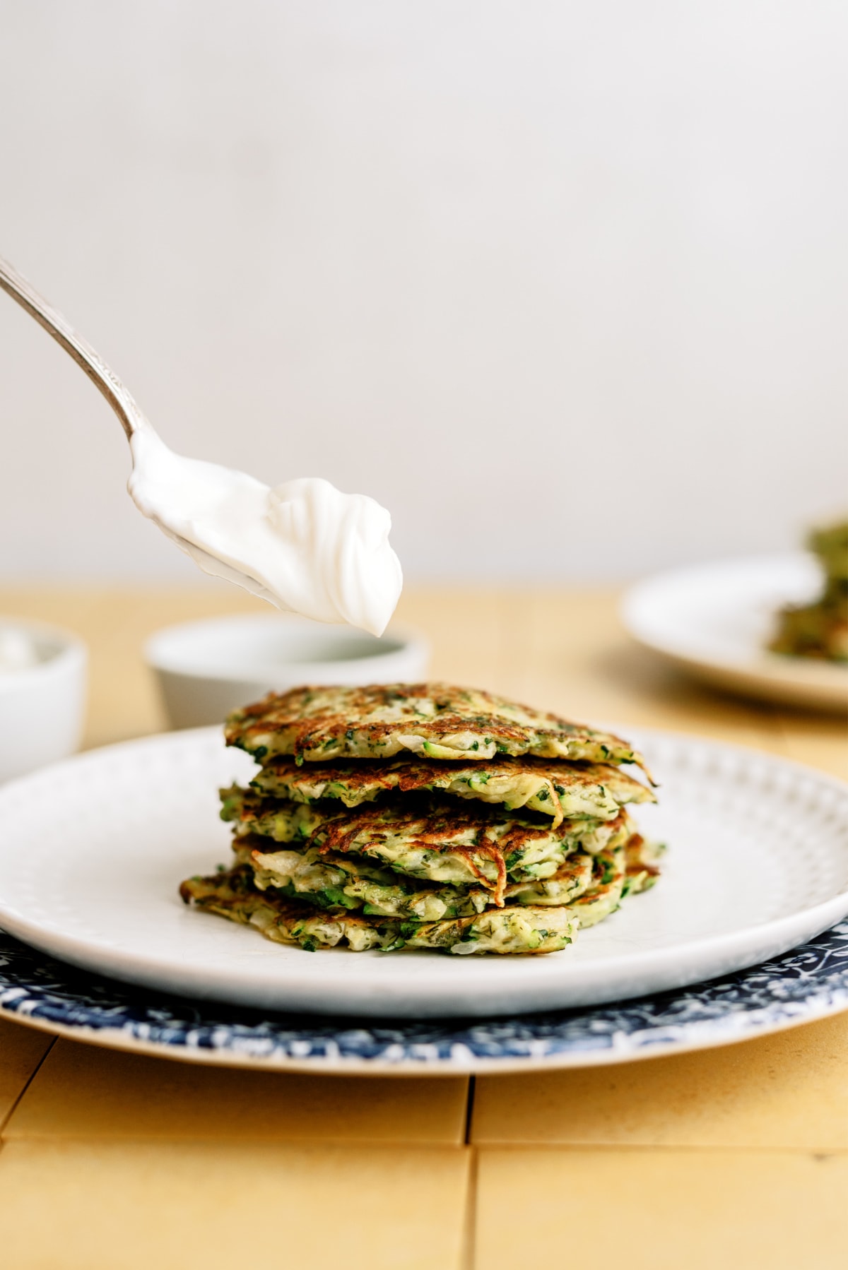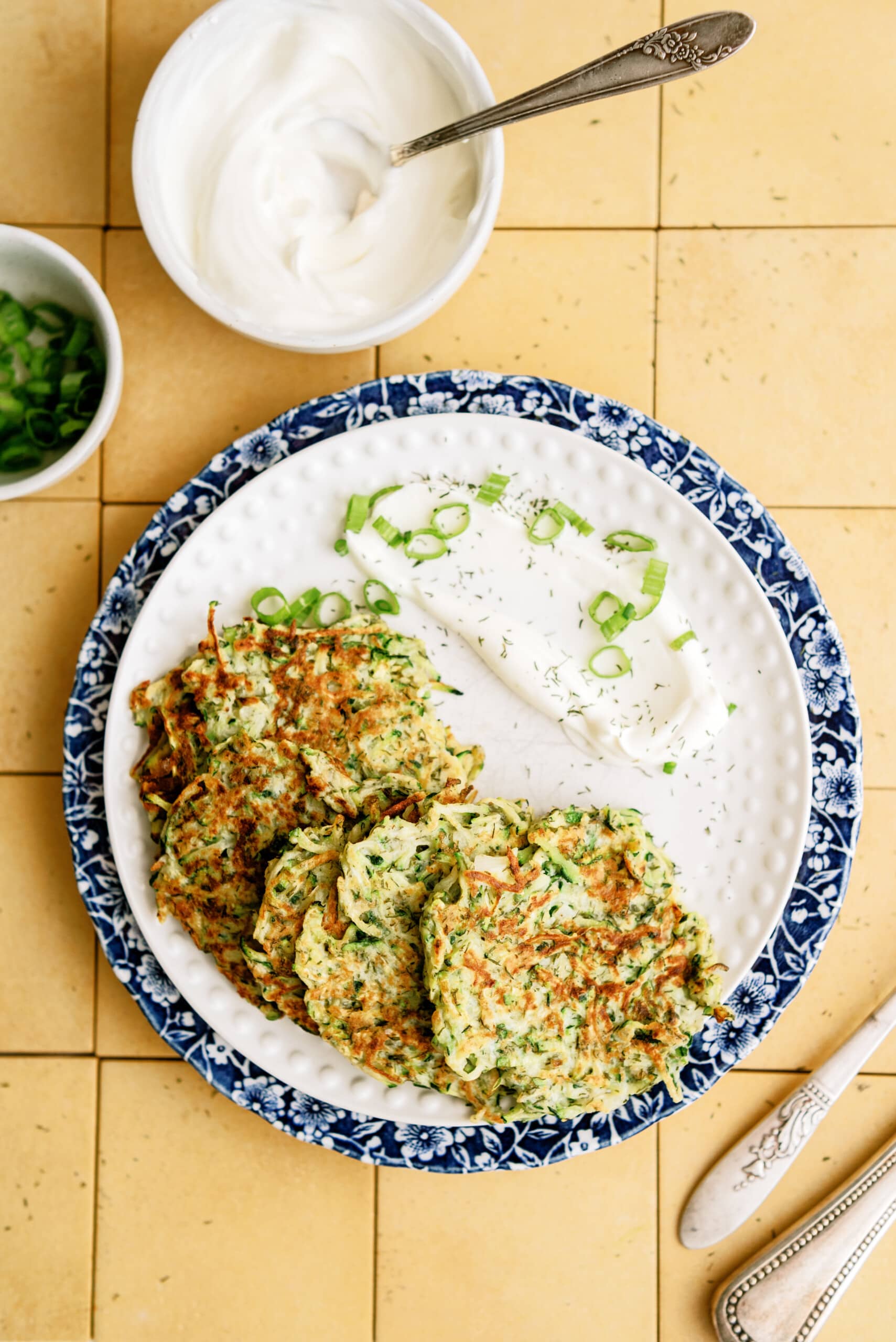 Zucchini fritters are perfect for a fast and easy snack or light lunch. Top with sour cream, cheddar cheese or even green onions and enjoy!