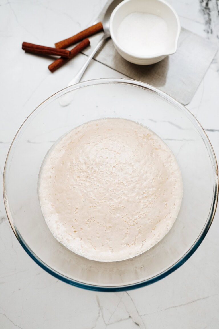 - In the bowl of a stand mixer, stir warm water together with yeast an 3 tablespoon sugar until mostly dissolved. After 10 minutes, mixture should be foamy. (If nothing has happened, throw it out and try again OR buy fresher yeast.)