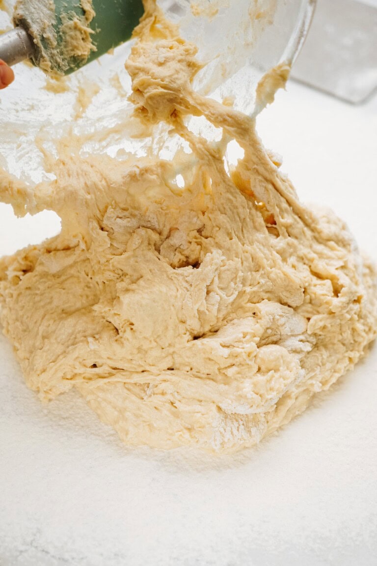 When in doubt, leave the dough a little on the sticky side and then refrigerate. You can always add in more flour later as you’re rolling out the rolls to compensate.