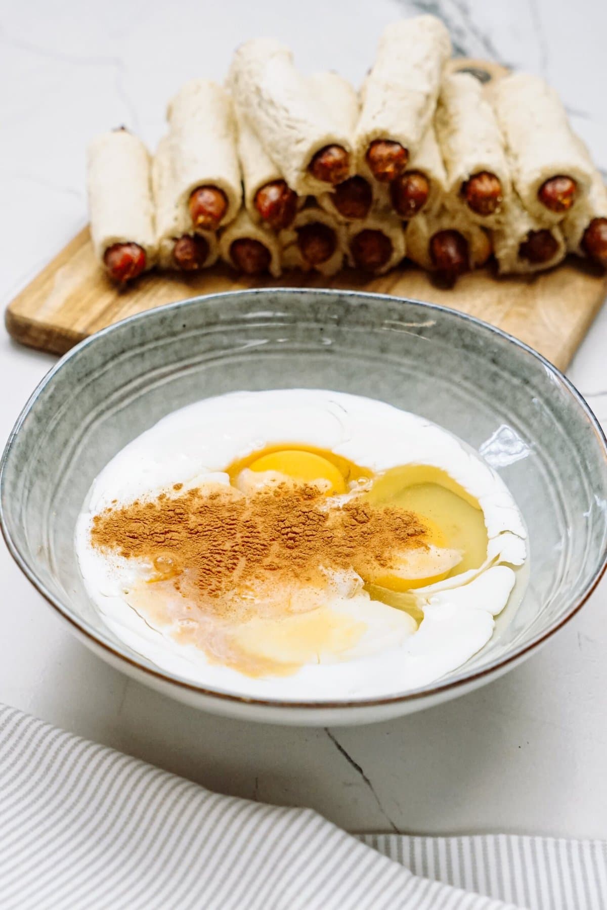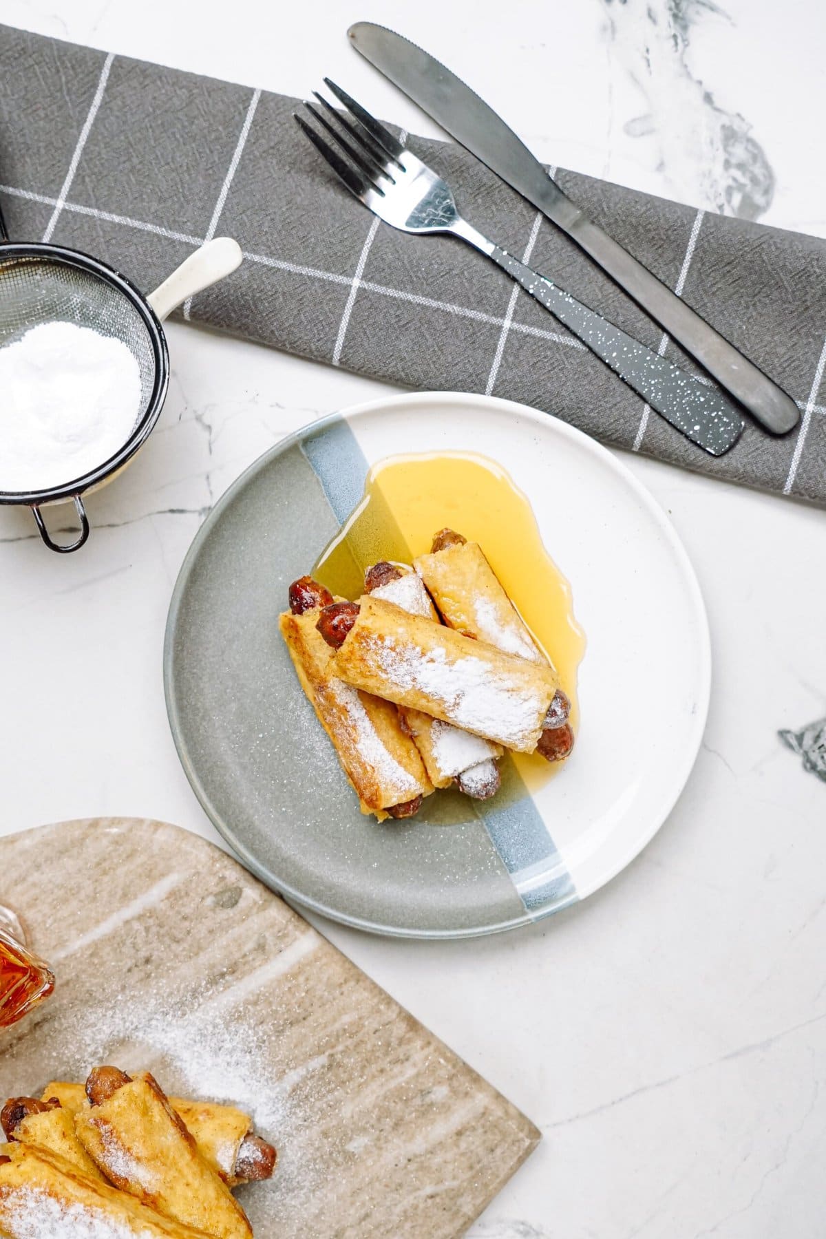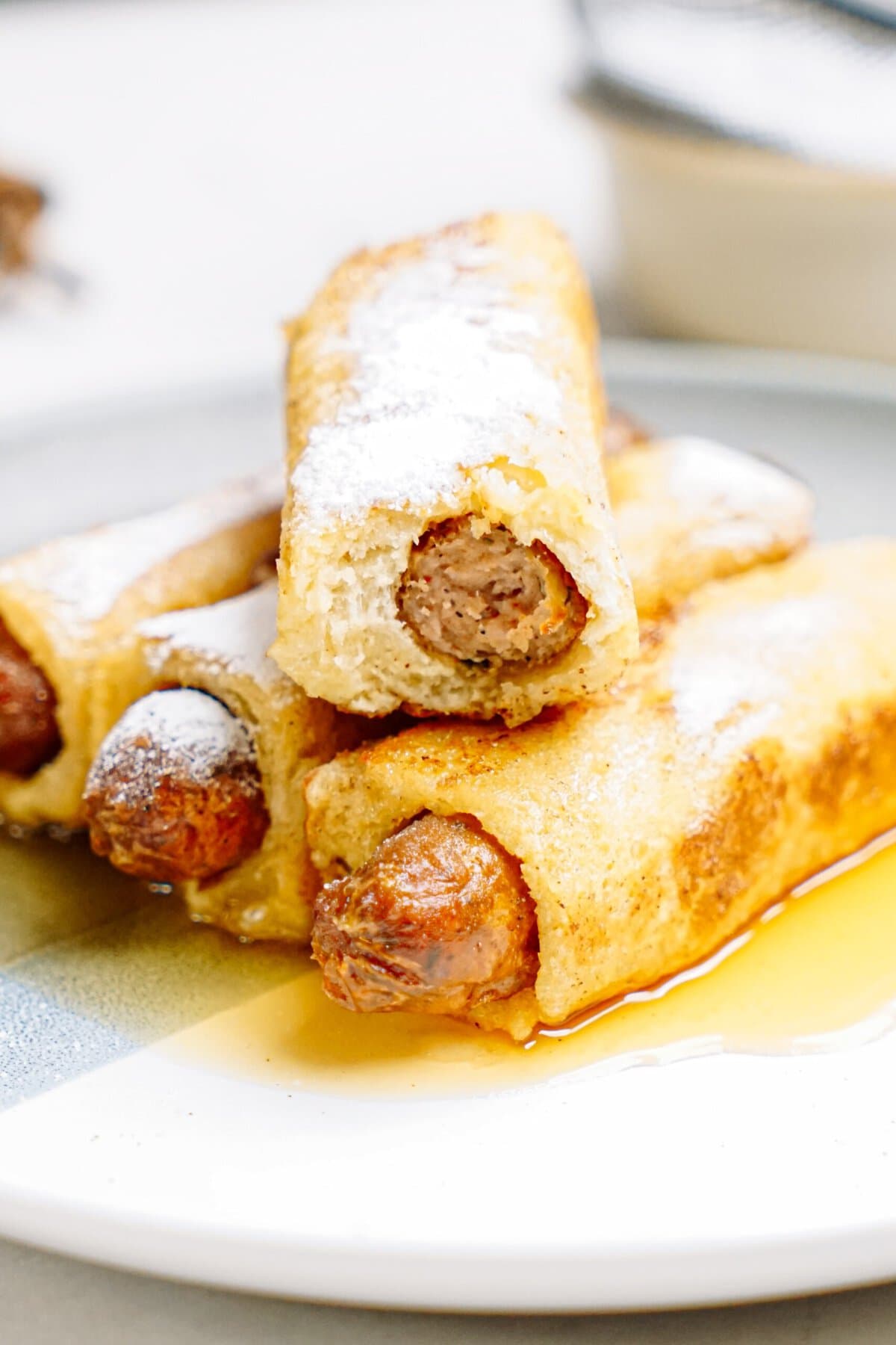 - Maple Breakfast Sausage Links – savory and sweet is the best combination! Cook sausages according to the package instructions before wrapping in the bread. Use store-bought or use my homemade breakfast sausage recipe.