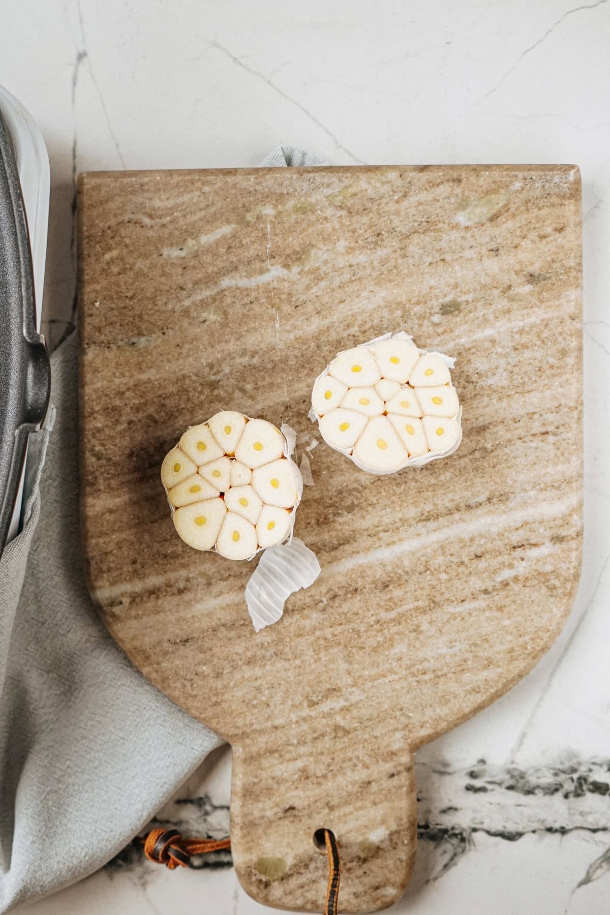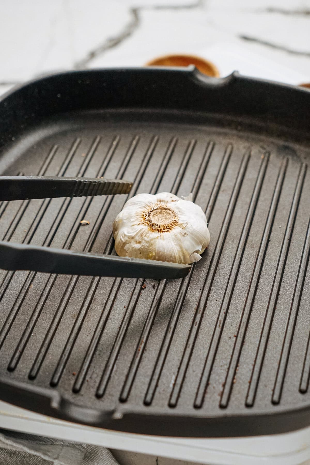 Pro Tip: You can skip grilling the garlic if you don’t want to take the time for this step. You only need 4 cloves of garlic for the dressing and can use raw, if desired. If you do grill your garlic head, you can save the rest for another recipe like garlic mashed potatoes or homemade bone broth.