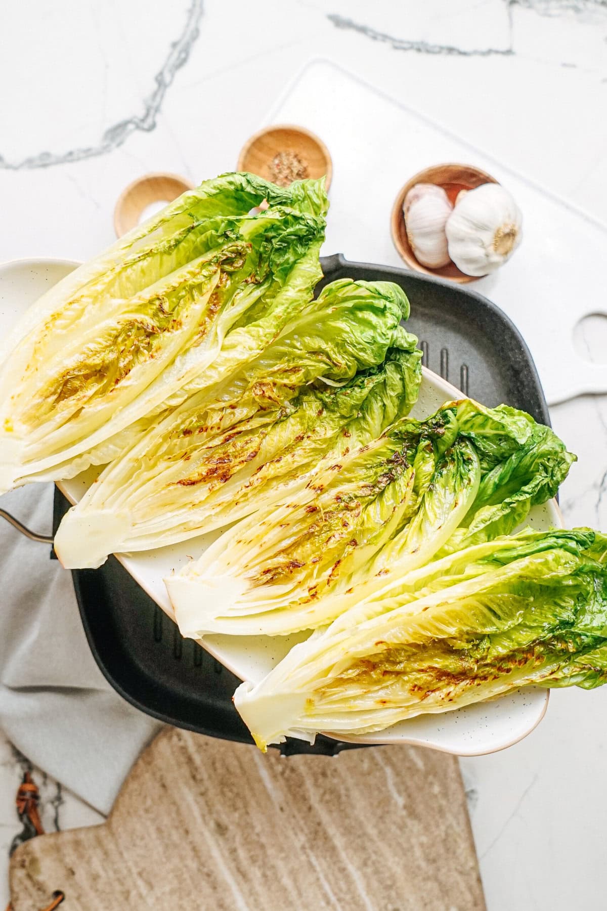If you have any leftovers, store the ingredients separately in airtight containers in the fridge. The dressing can last for about 3-4 days, but the grilled romaine is best eaten fresh.