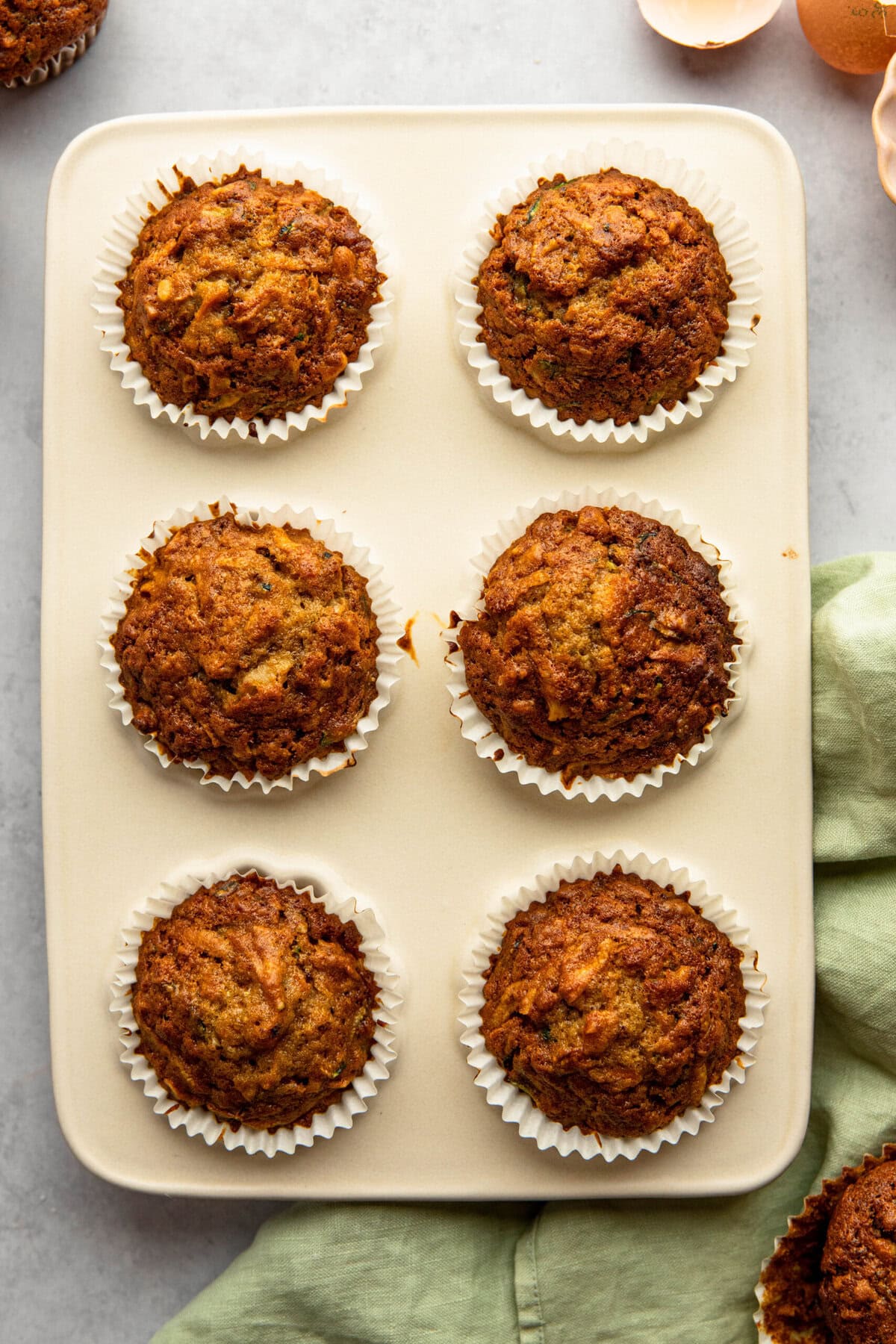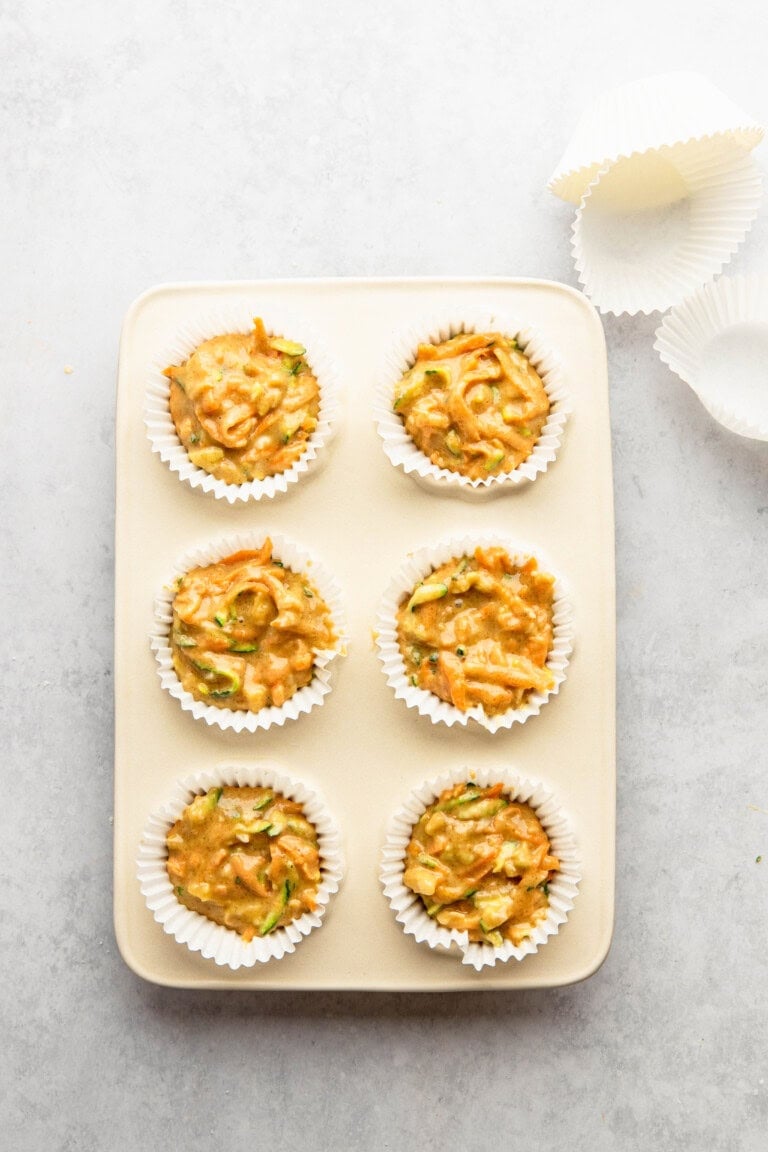 Believe it or not, the hardest part of this recipe is grating all the veggies, which is not hard at all, just mostly time consuming. Besides that, it’s a very straight forward recipe. For full recipe details, including ingredient measurements, see the printable recipe card down below. Here is step-by-step directions for how to make these muffins: