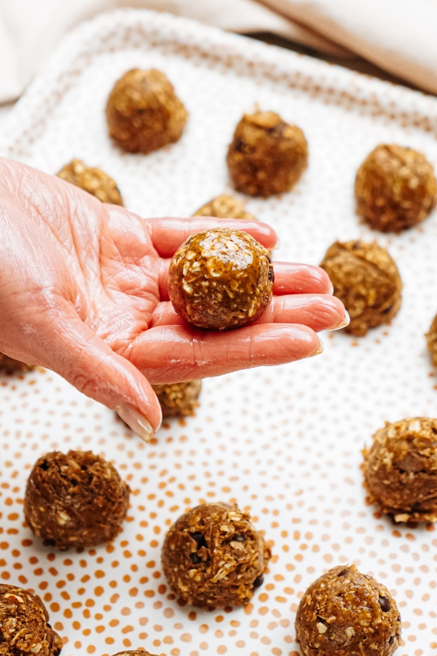 - Place onto wax paper and continue this process until all energy bites are formed.