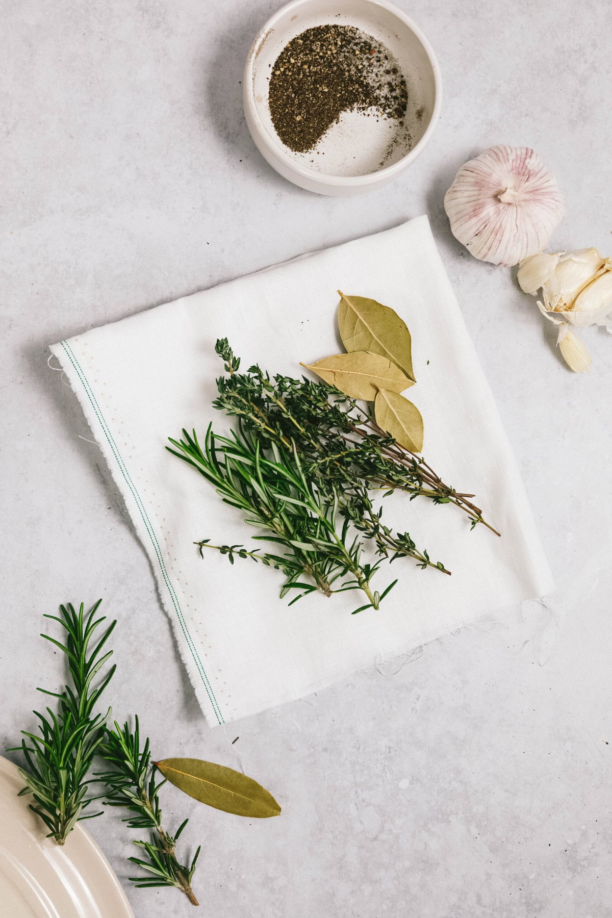 - fresh herbs– sprigs of rosemary and thyme. Dried herbs are fine too.