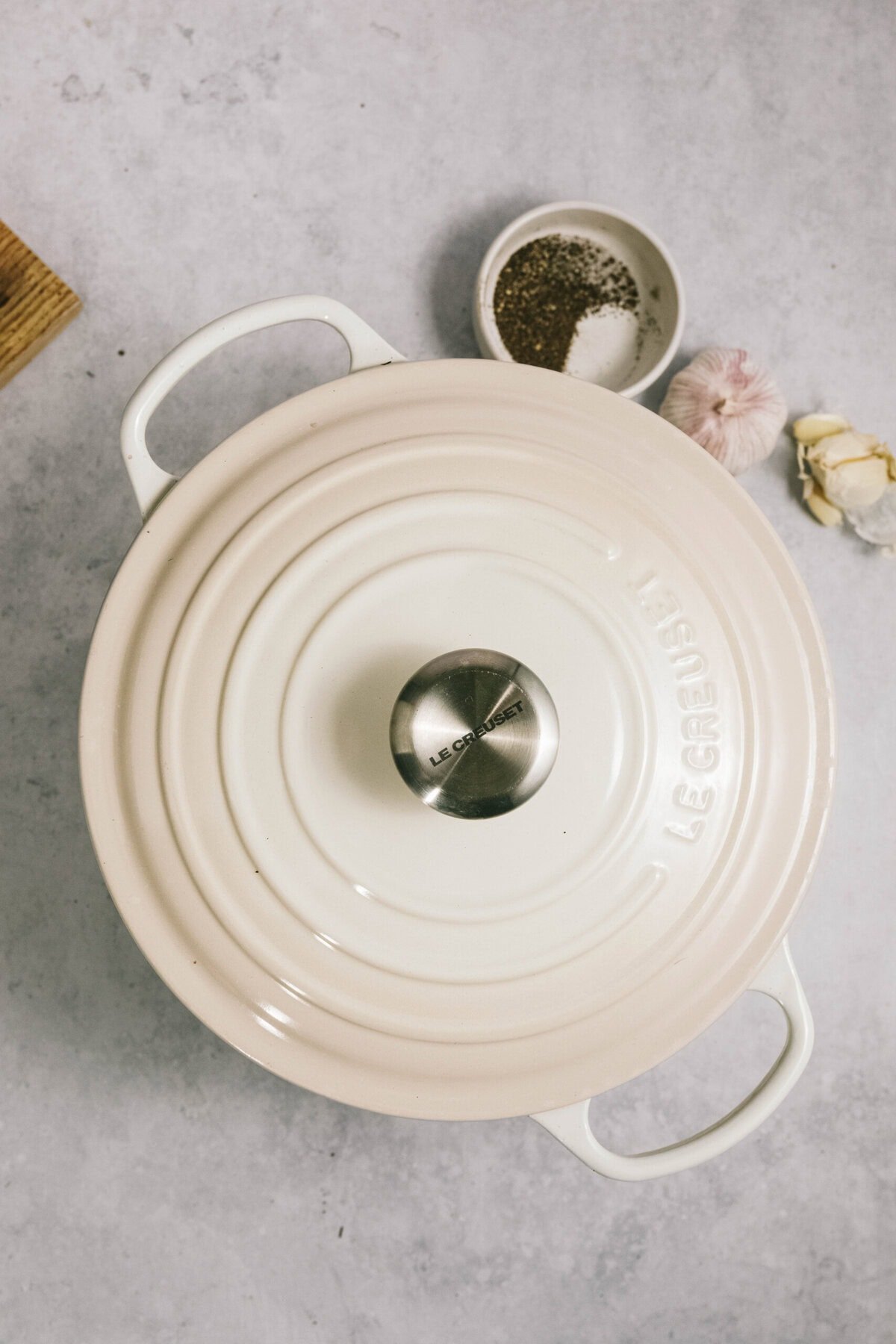 - Preheat oven to 300° F. Preheat a large dutch oven or heavy bottomed pot on medium high heat on the stovetop.