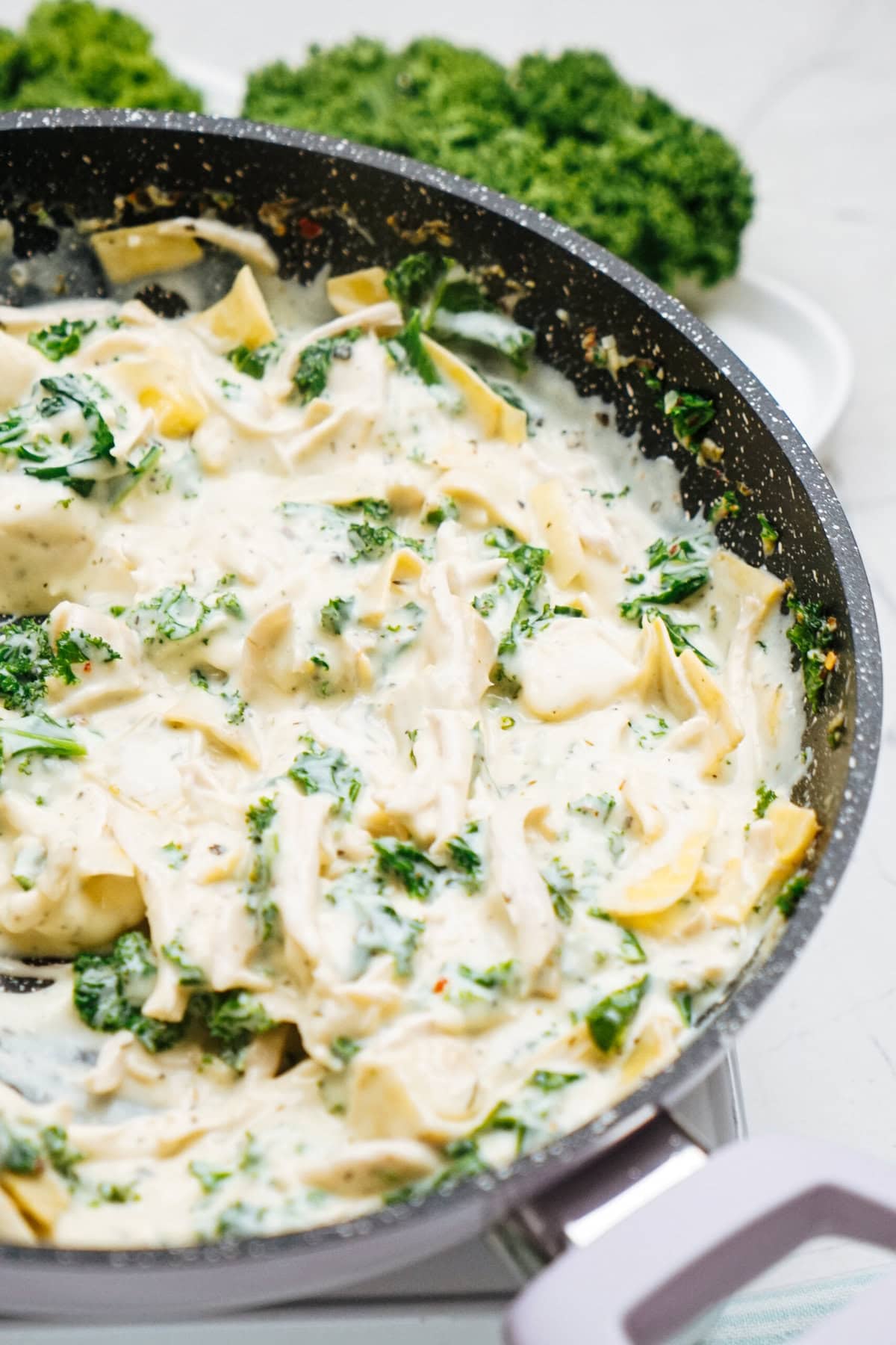 To Freeze: Freeze the chicken and kale pasta in individual portions in an airtight container for up to 2 months. Reheat gently with a splash of chicken broth or milk.
