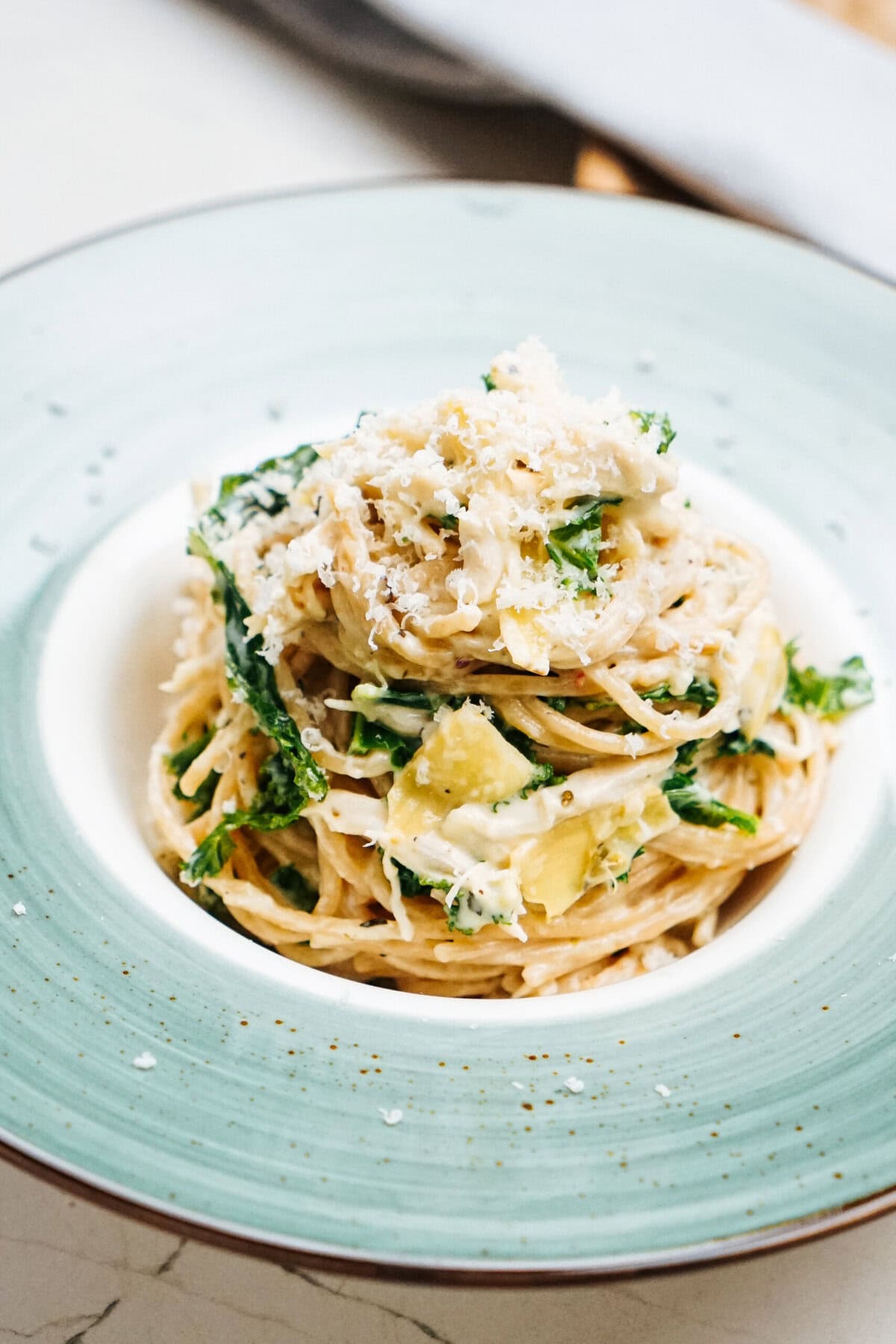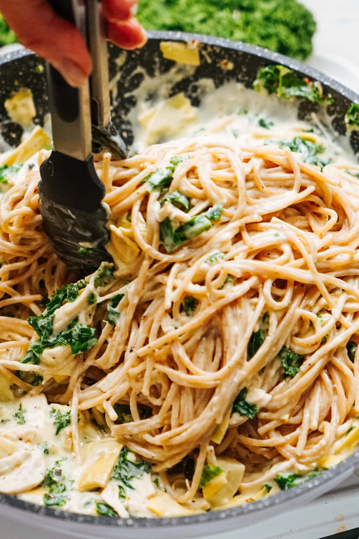 Looking for a delicious pasta dish that’s easy to whip up on a busy weeknight? This Chicken Kale Pasta is the perfect solution! With tender spaghetti noodles coated in a creamy sauce made with parmesan cheese, garlic, and a touch of red pepper flakes, this recipe is packed with flavor. The addition of baby kale and artichoke hearts takes this dish to the next level, offering a healthy and satisfying twist on classic Italian-style pasta recipes. Plus, it’s a great way to use up leftover chicken or rotisserie chicken, saving you time and effort.