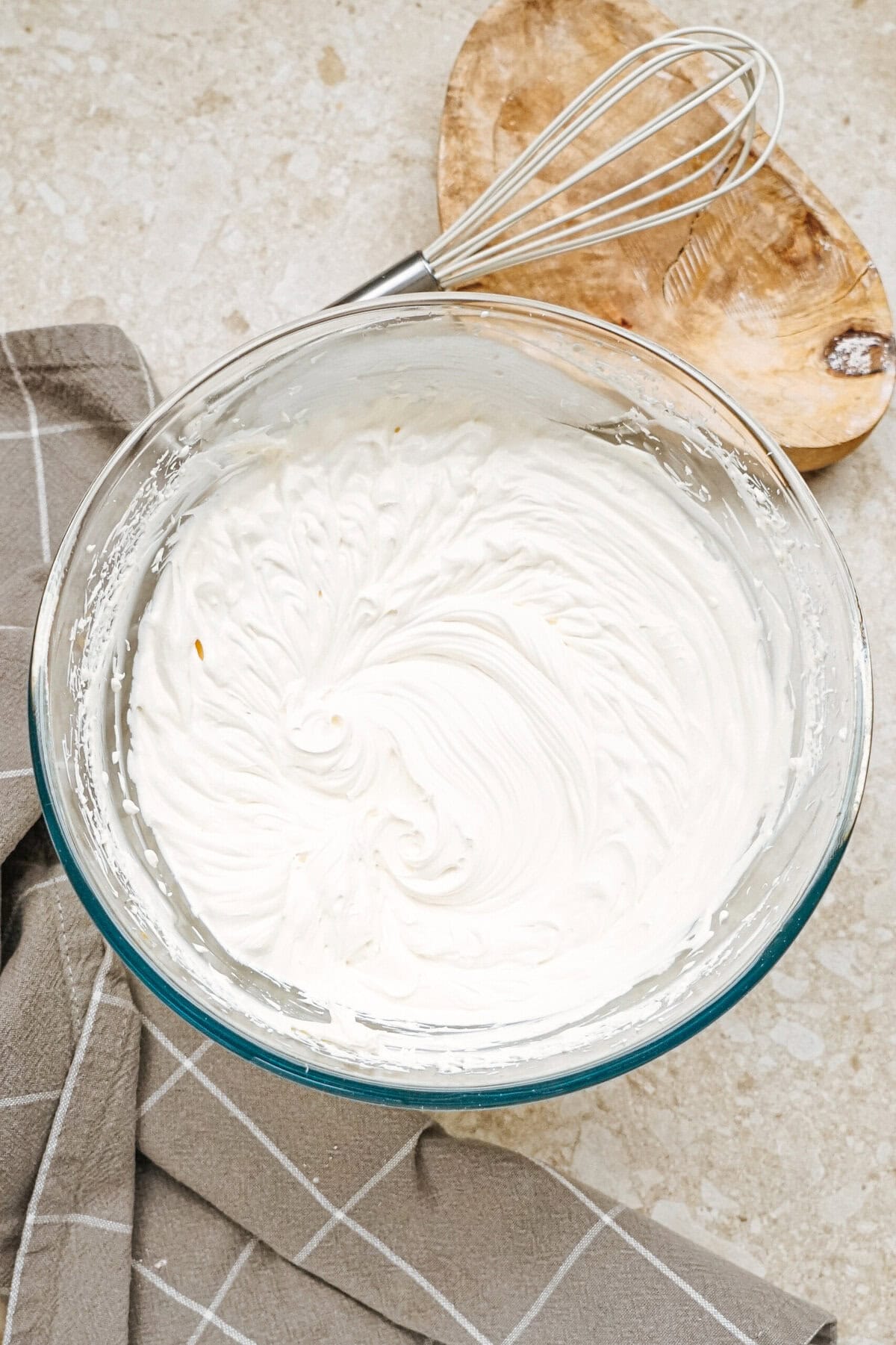 - Whip 1 minute until thick and light. Scrape the sides and bottom to ensure even mixing and whip again if needed.