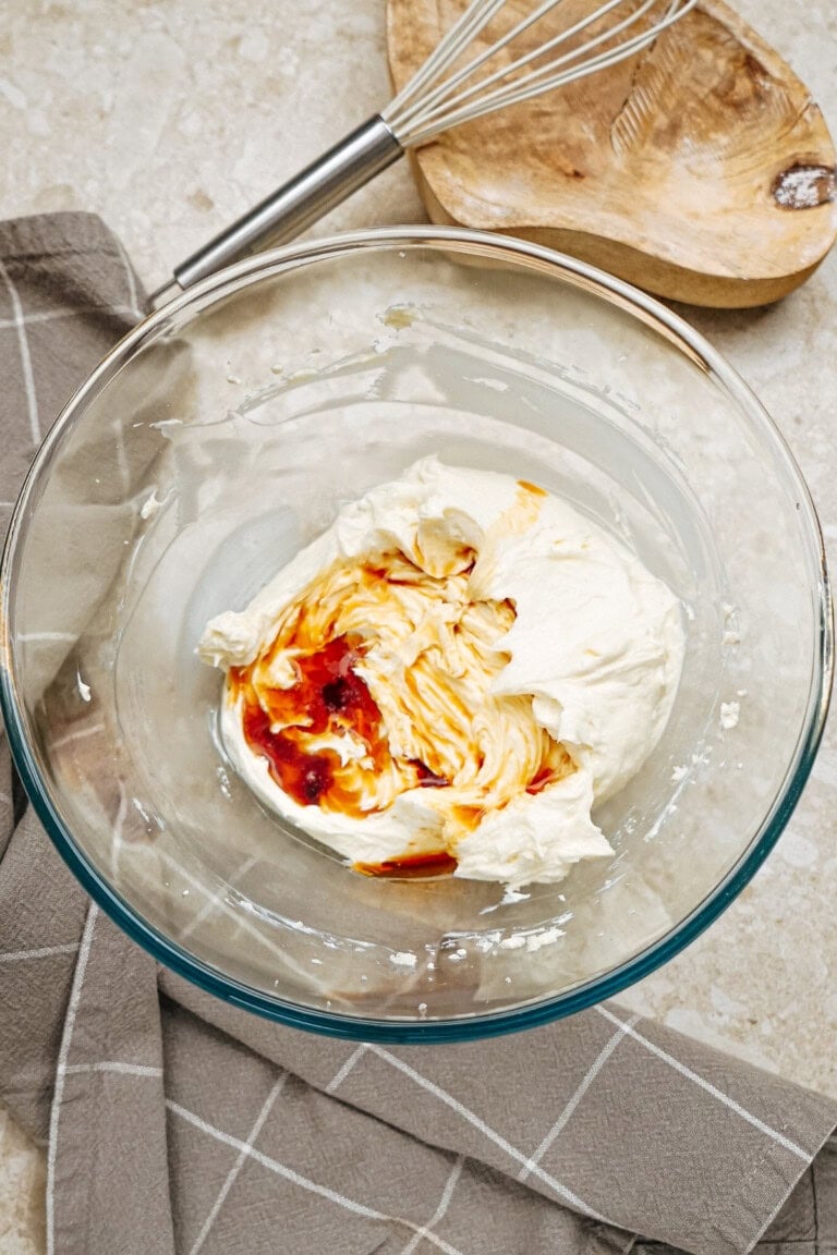 - Scrape the sides and mix again to ensure there are no lumps. Stir in vanilla extract.