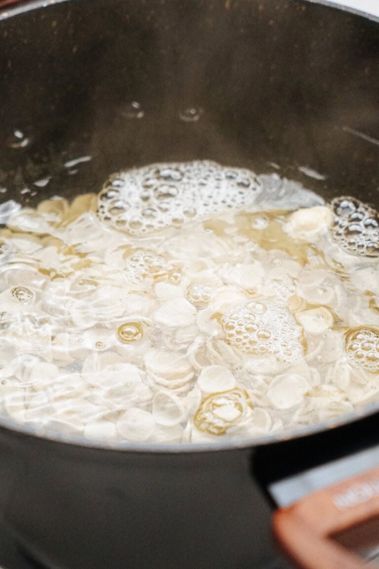 - Reduce heat to medium-low and add minced garlic, cooking until fragrant, being careful not to burn. Add red pepper flakes (optional),