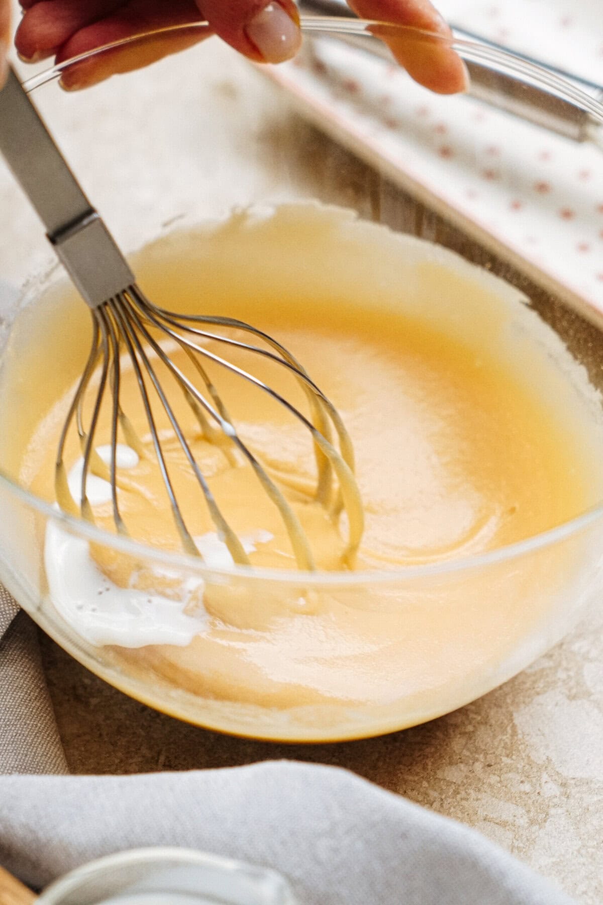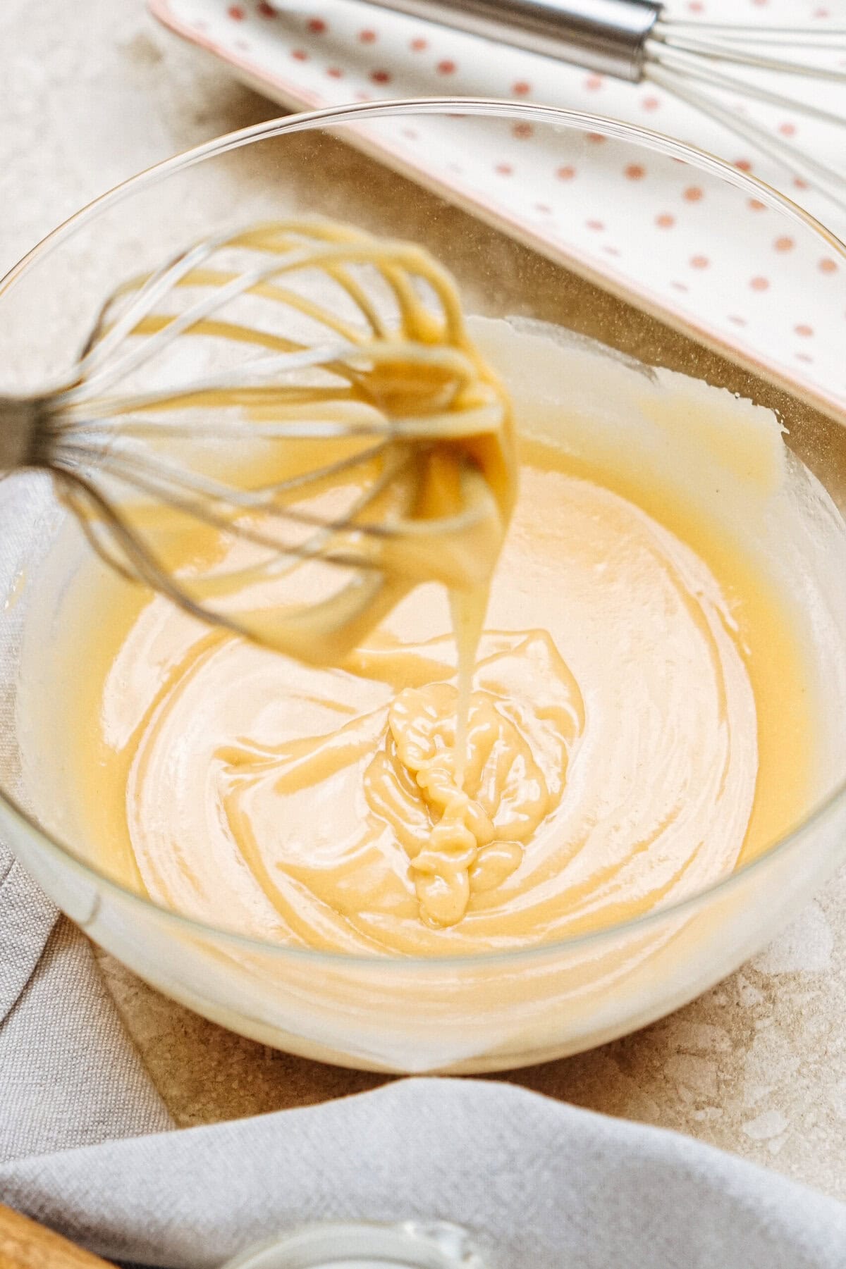 • Whisk until smooth and then continue adding more milk, little by little, until desired consistency is reached.