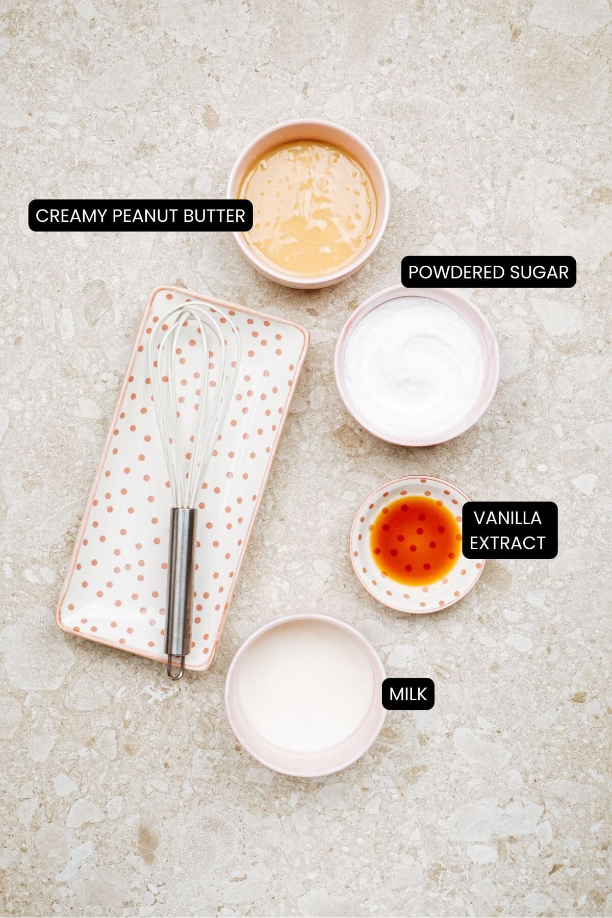 • In a small bowl, stir peanut butter together with powdered sugar, vanilla extract, and milk.