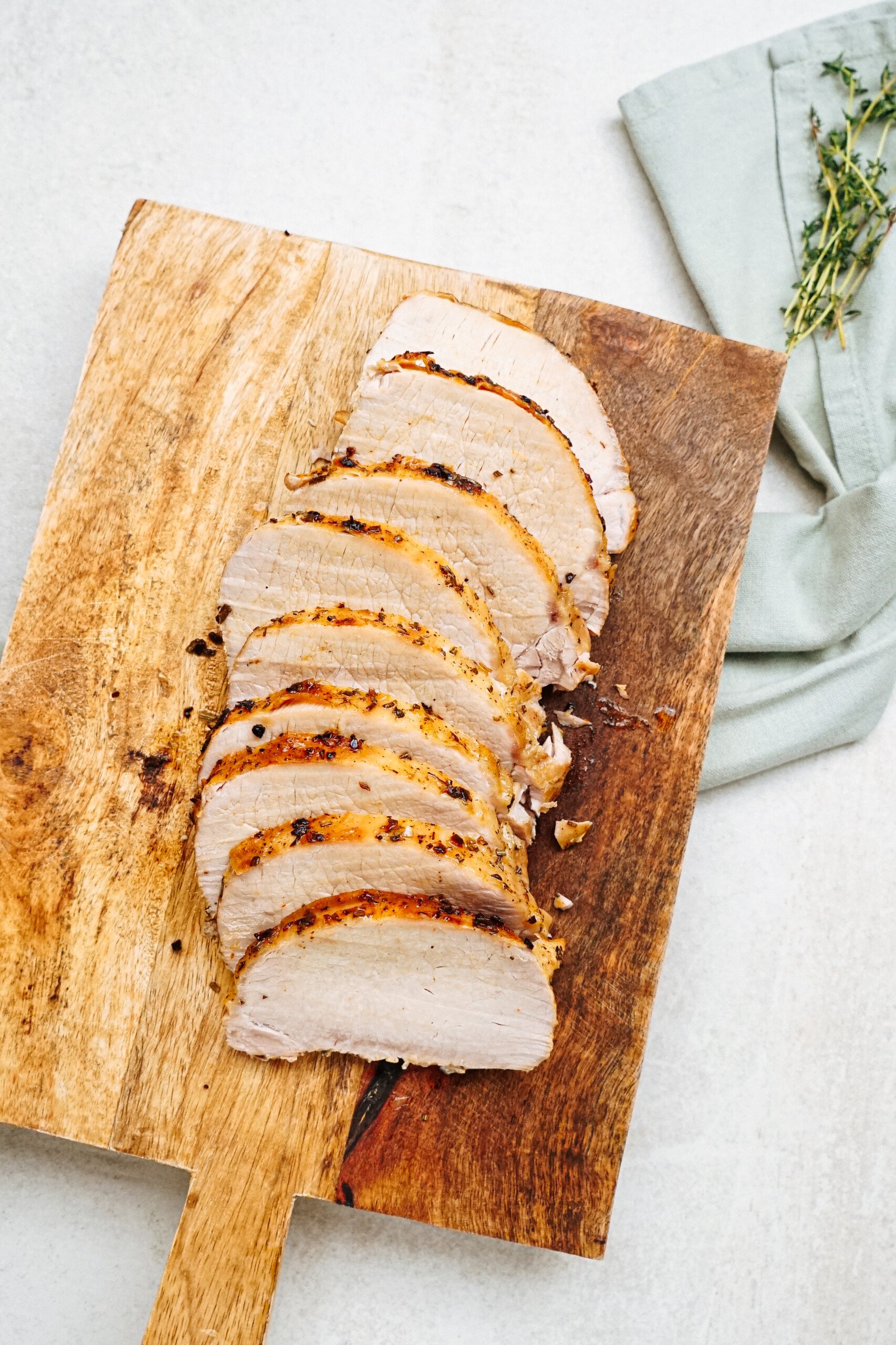 For this recipe, you’ll want to look for a boneless pork loin roast—not to be confused with pork tenderloin. Pork loin is a larger, lean cut of pork that’s perfect for roasting. Some will come tied with string to help it hold its shape and cook evenly, which is helpful but not required.