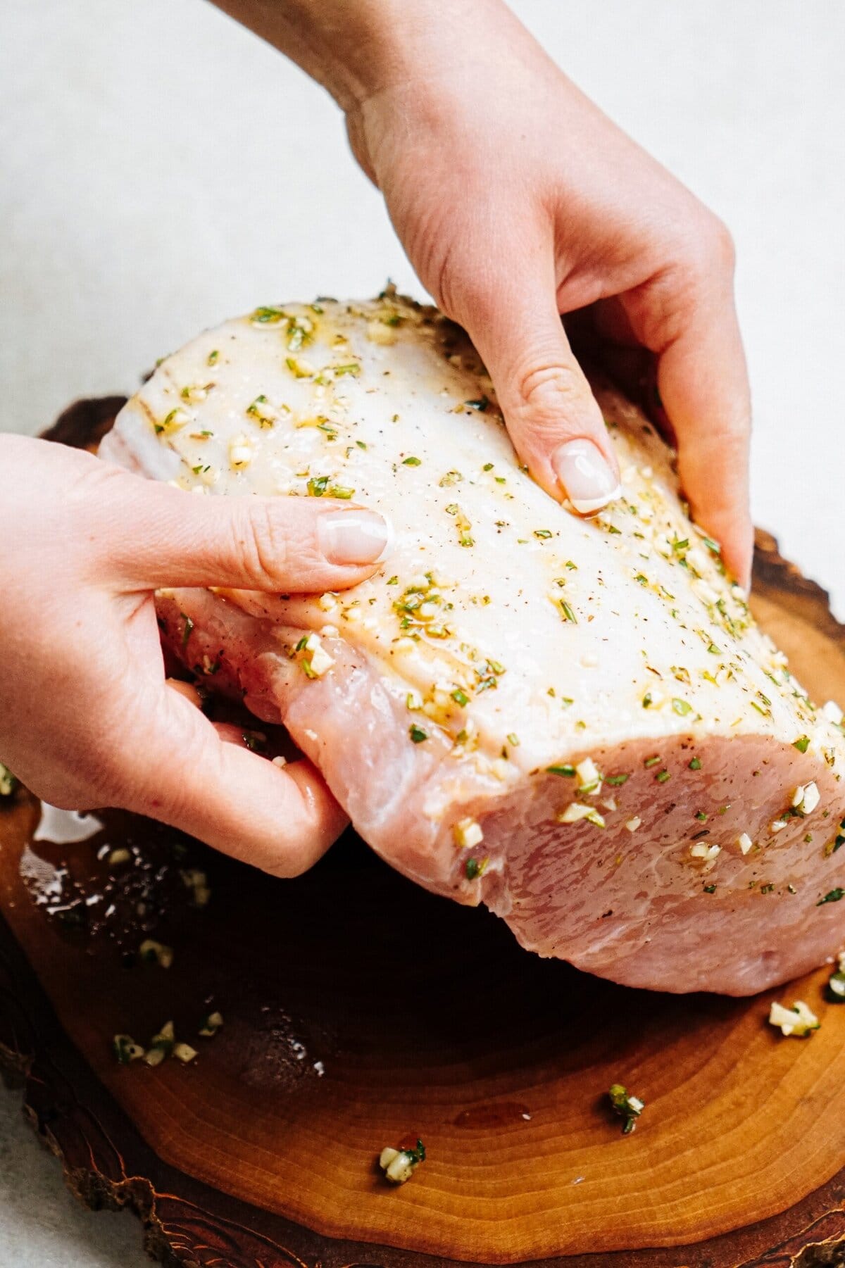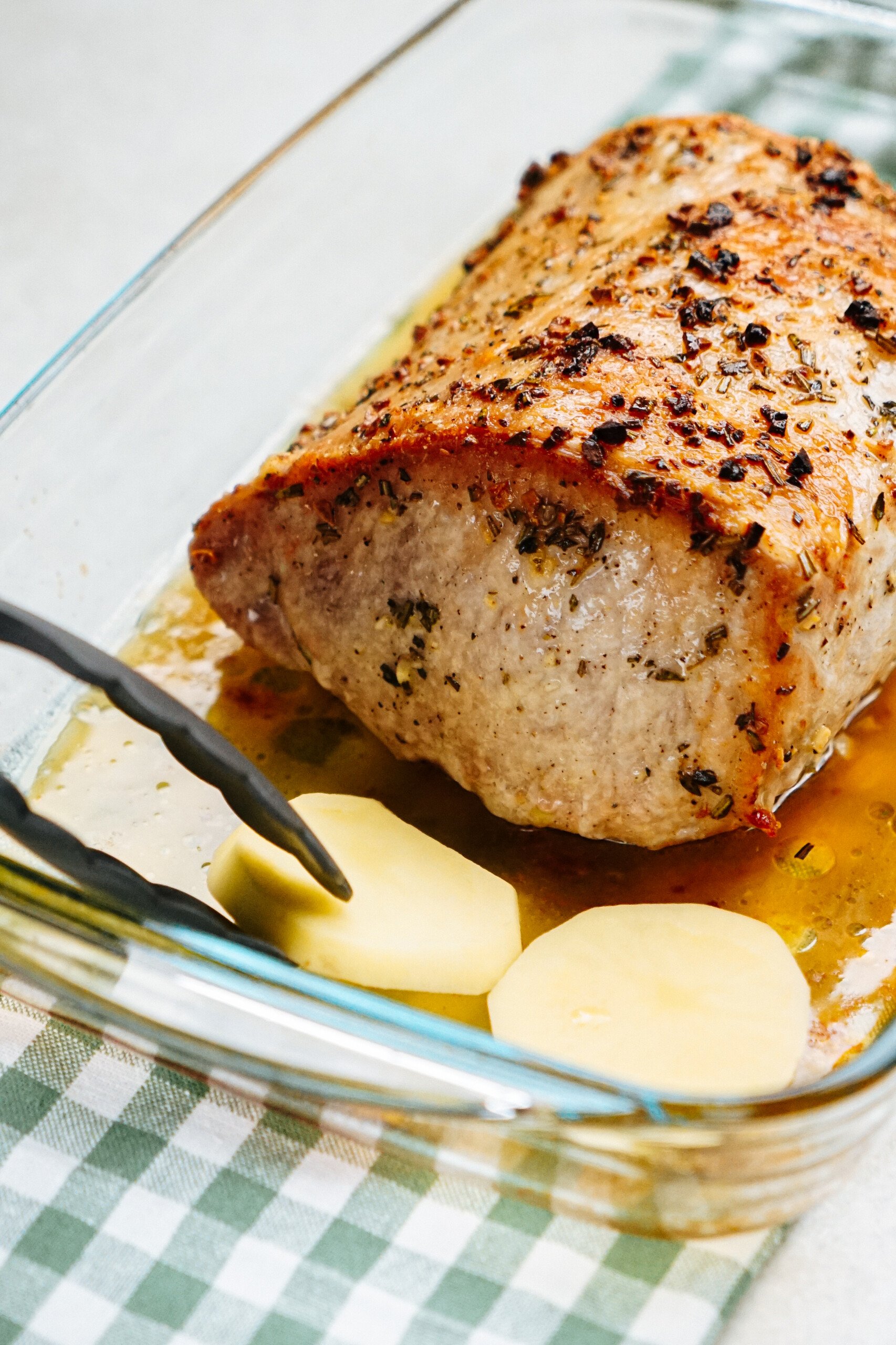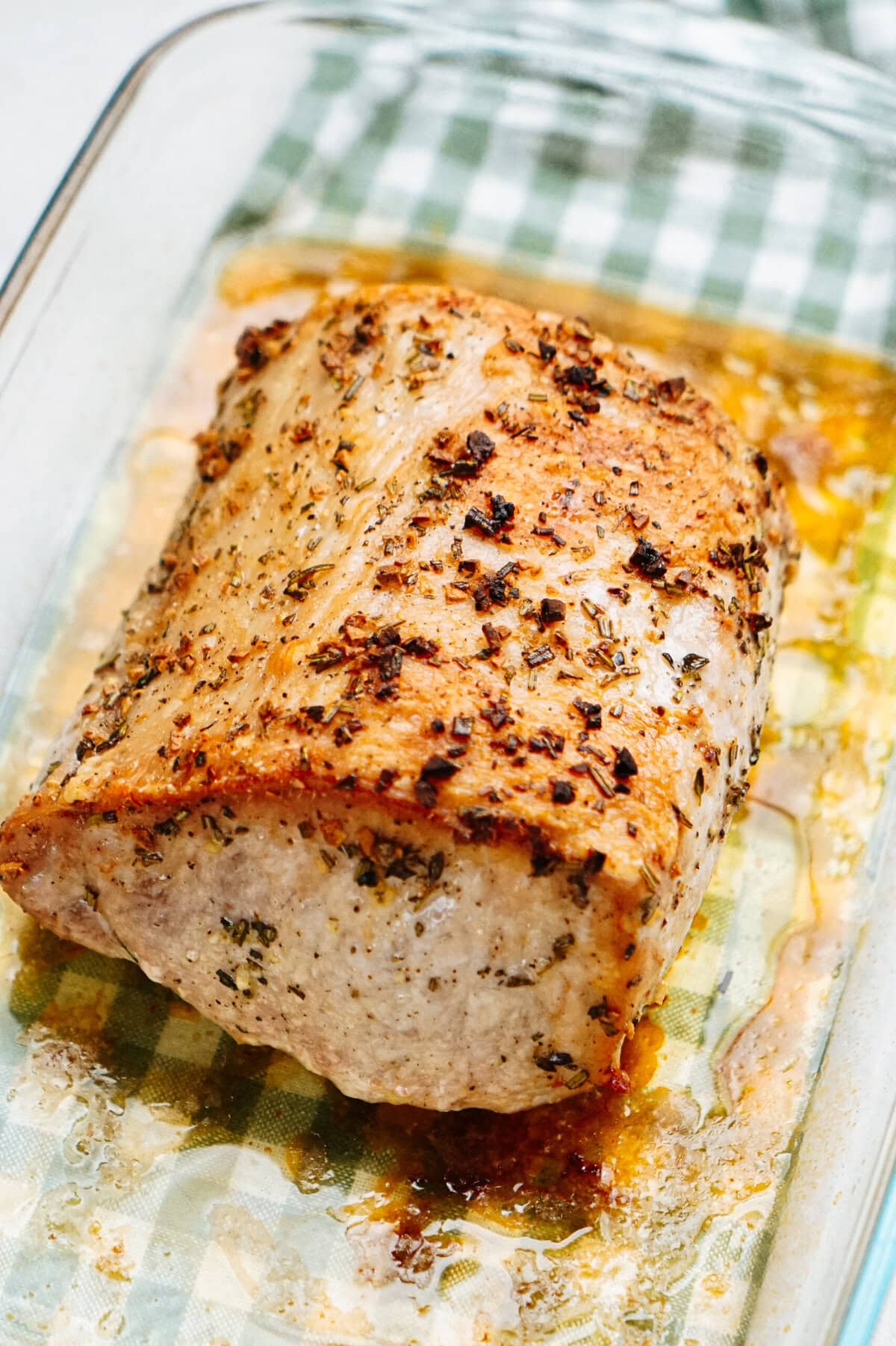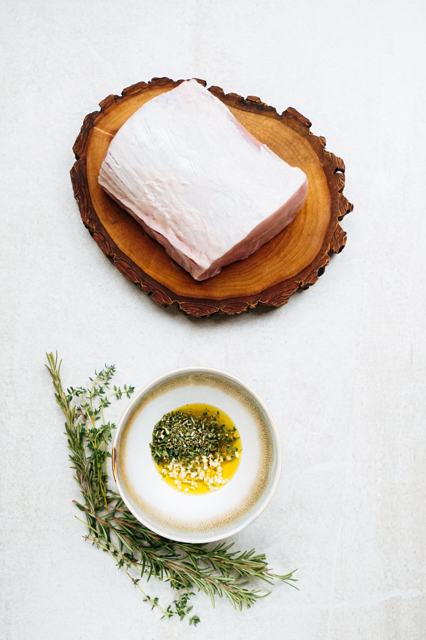 - Boneless pork loin roast – a lean cut of meat with a layer of fat on top helps lock in moisture