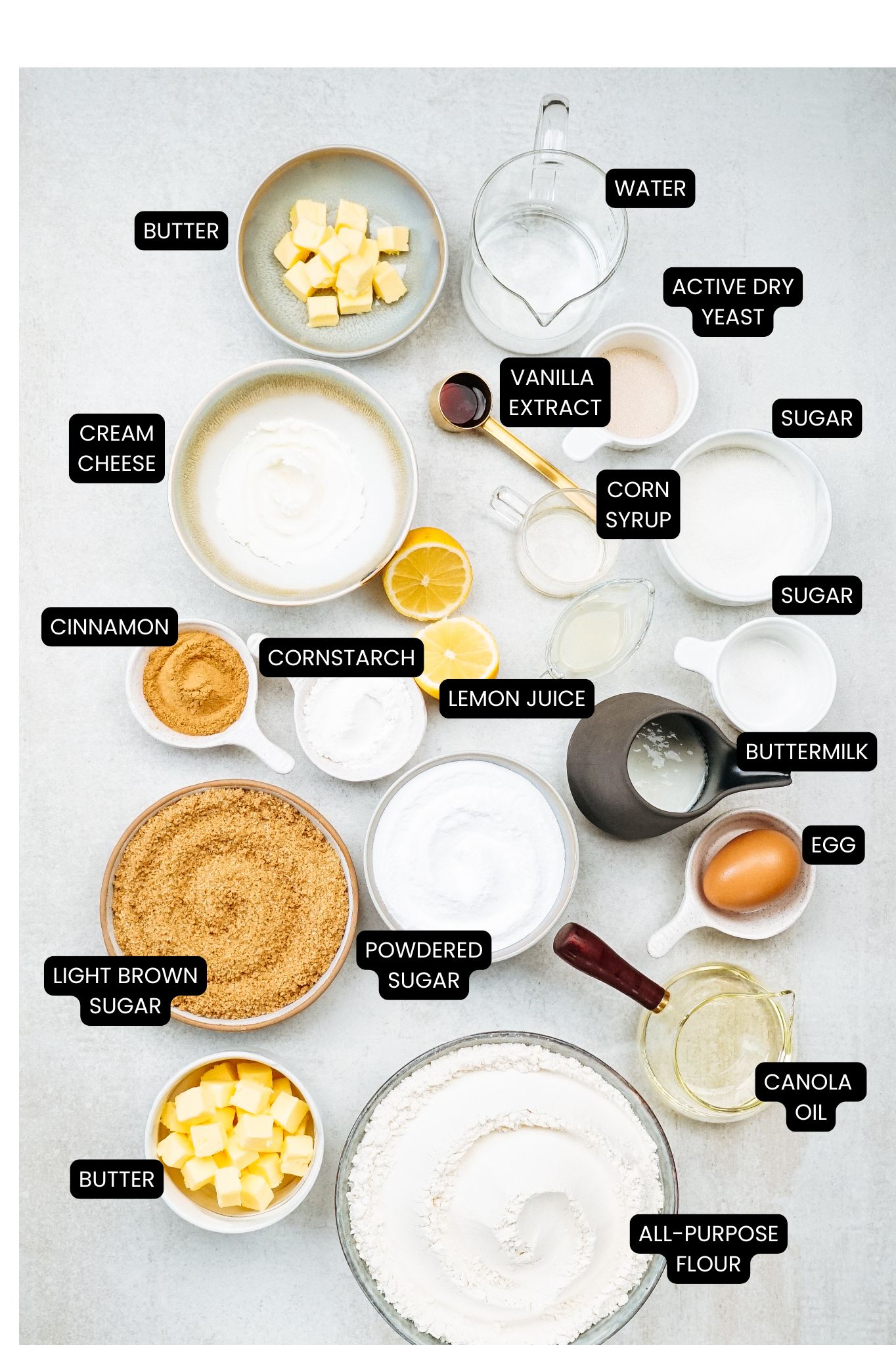 • cornstarch– a bit of a weird ingredient for cinnamon rolls, I know, but it helps with keeping the cinnamon roll filling in the roll as they bake.