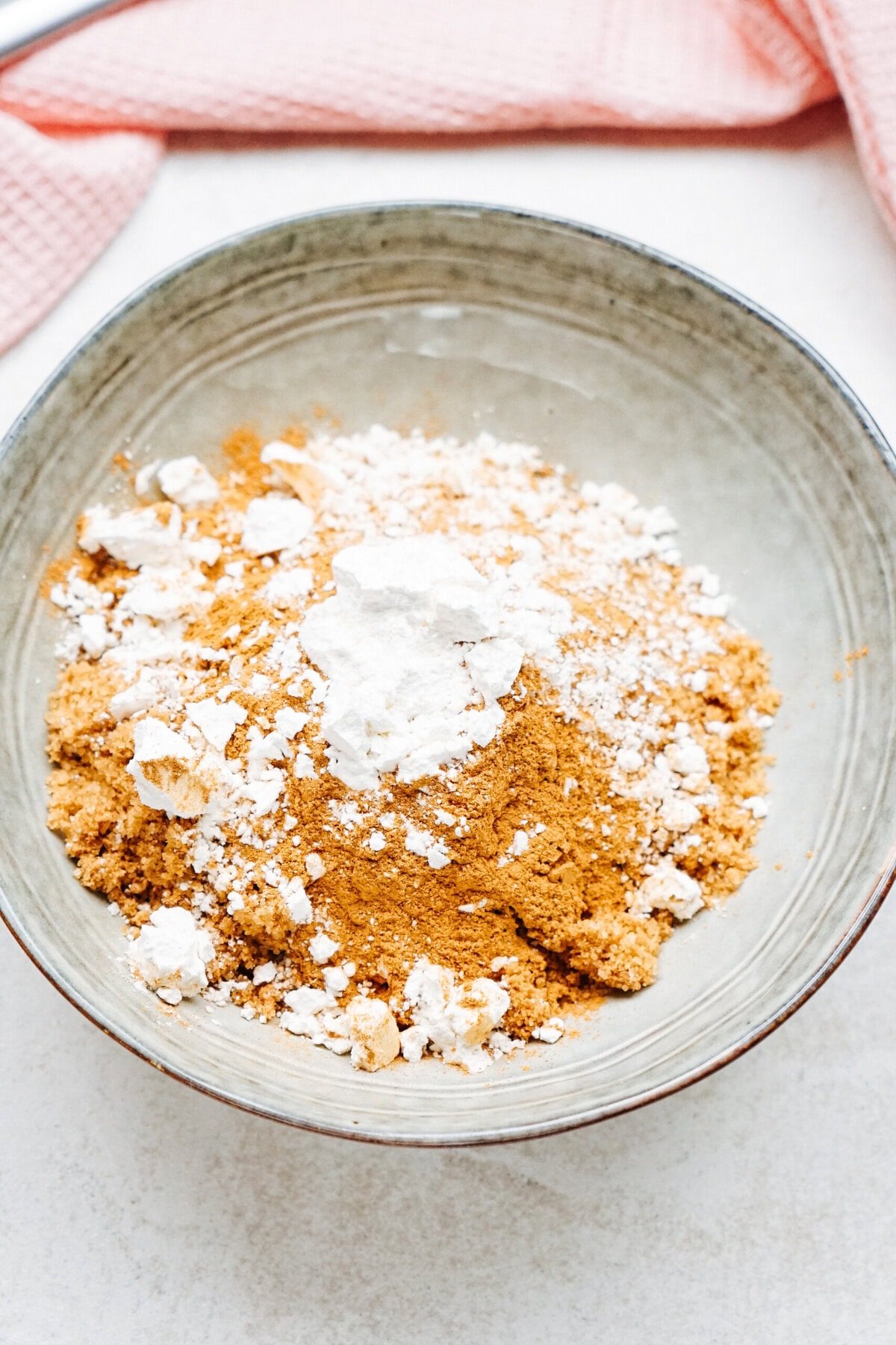 • In a medium-size bowl, stir brown sugar, cinnamon, and cornstarch together until combined. Set aside.