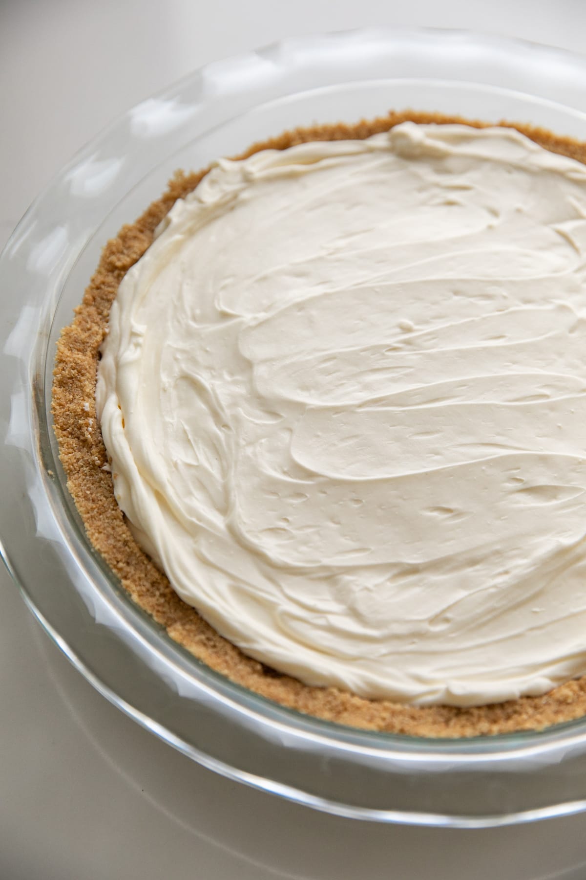 Pour into prepared pie shell, smooth the top and cover in plastic wrap. Refrigerate 2 hours to overnight.