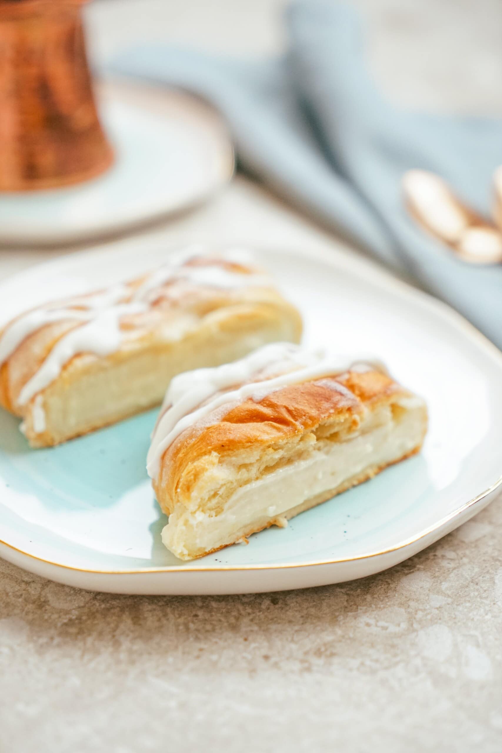 Yes, yes they are. Puff Pastry dough is made with flour, water and butter. It’s then rolled out and folded several times creating layers. When it’s baked, it creates air pockets within the layers which makes the light and flaky pastry. Crescent roll dough is made with similar ingredients plus sugar making it a bit sweeter, but still has that light and flaky texture that we all love in a danish or other pastries. I used crescent roll dough for this recipe because honestly it’s what I had on hand. I found that it was a bit easier to work with and it turned out great too!