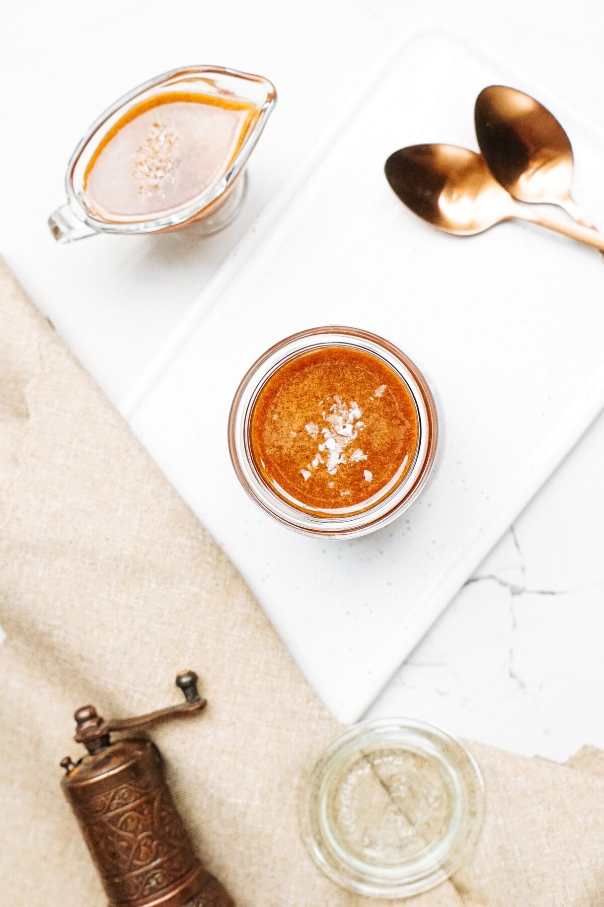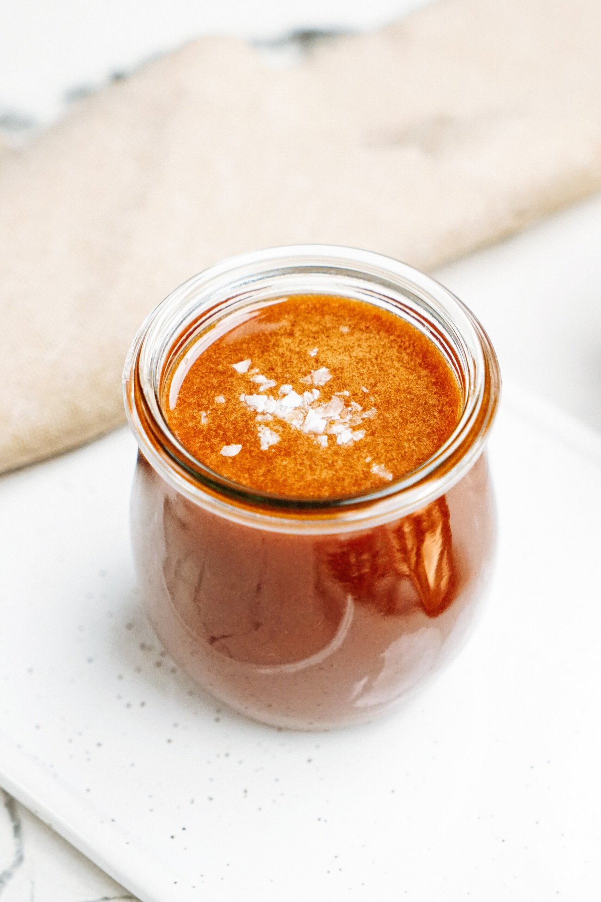 Continue whisking until the sauce is smooth, then stir in butter, vanilla extract, and coarse sea salt. Allow to cool before using or store in a glass jar.