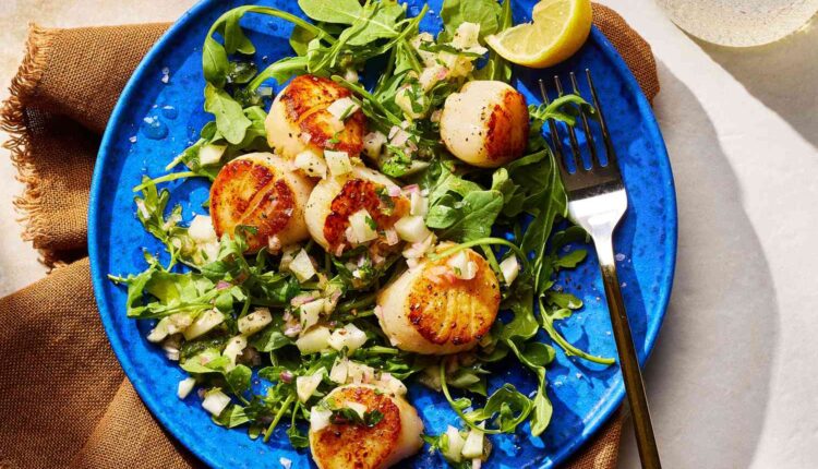 Chef and author Joanne Weir shares a recipe for simple seared scallops that works equally well as a first course or a light entrée. The delicately cooked shellfish — silky inside, with a nice golden crust — is served over a bed of arugula and topped with an easy fennel-shallot relish with lemon and herbs.