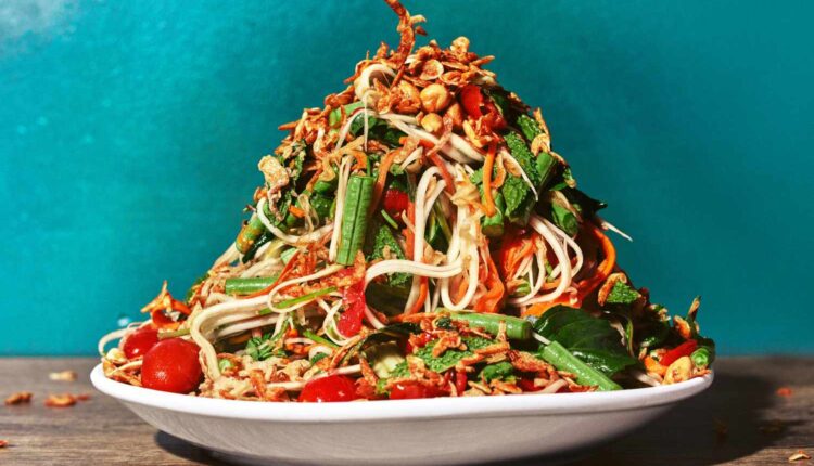 Bright and punchy, this salad combines shredded green papaya with tomatoes, chiles, lime, brown sugar, and funky shrimp paste for a crunchy salad that hits sweet, sour, salty, and spicy notes.